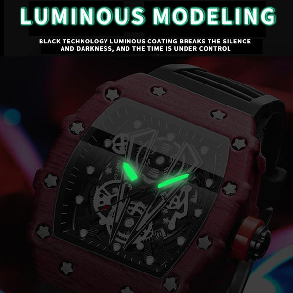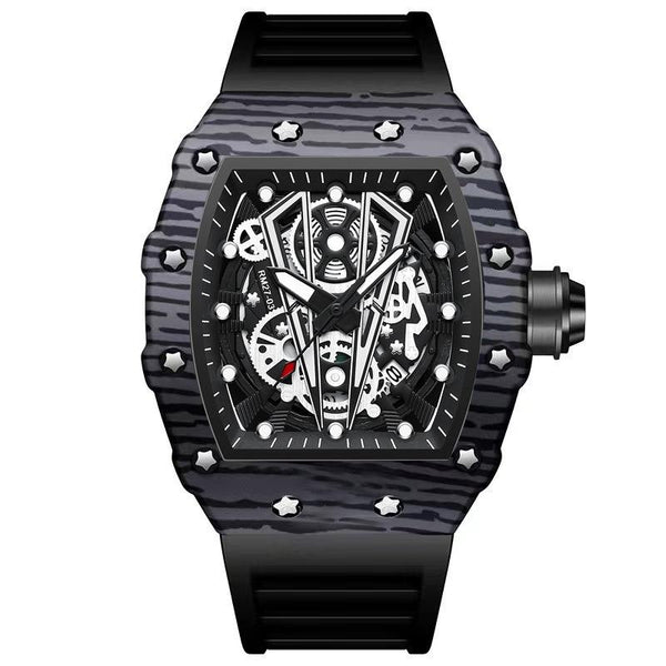 BINBOND B6577 Barrel Shape 30m Waterproof Sports Quartz Watch(Black Silicon-Black-Black)