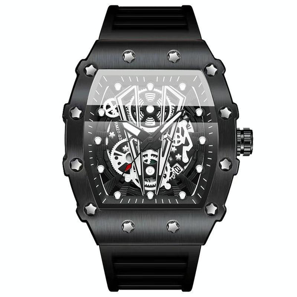 BINBOND B6577 Barrel Shape 30m Waterproof Sports Quartz Watch(Brushed-Black Silicone-Black-Black)