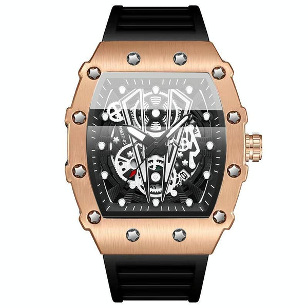 BINBOND B6577 Barrel Shape 30m Waterproof Sports Quartz Watch(Brushed-Black Silicone-Rose Gold-Black)