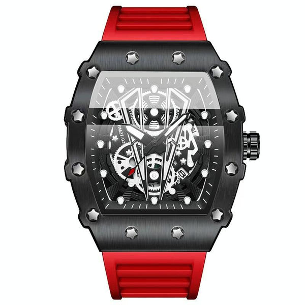 BINBOND B6577 Barrel Shape 30m Waterproof Sports Quartz Watch(Brushed-Red Silicone-Black-Black)