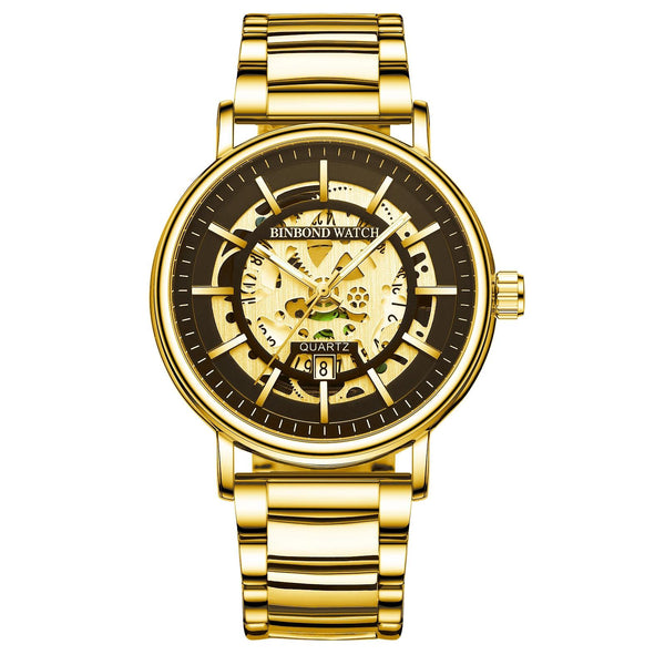 BINBOND B7872 Multifunctional Hollow Luminous Waterproof Quartz Watch, Color: Full-gold-Black-Gold