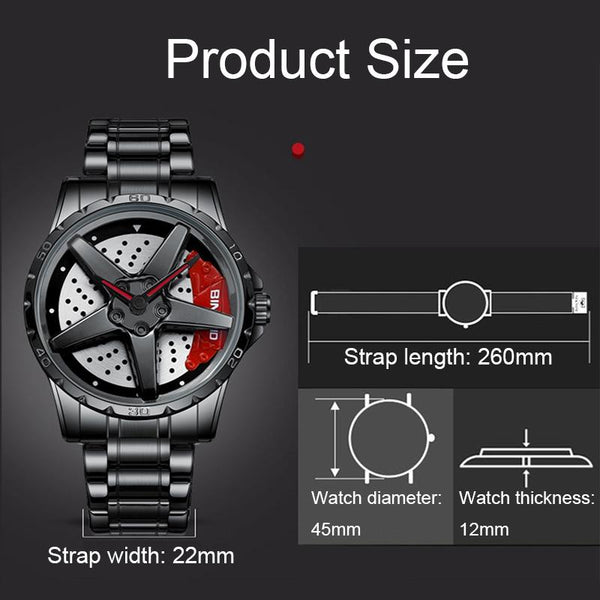 BINBOND D002 Car Hub Dial Multifunctional Waterproof and Wear-resistant Men's Watch(White Net-White-Red)
