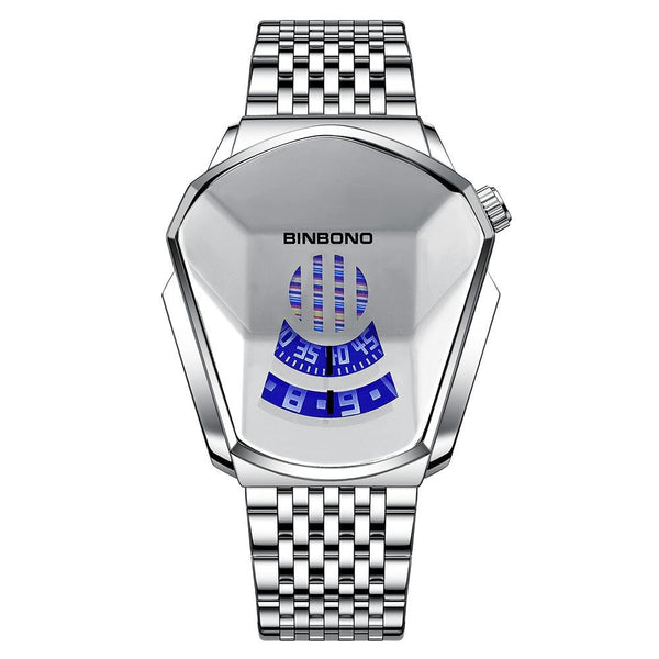 BINBOND Locomotive Concept Steel Belt Watch Men Live Black Technology Watch(White Steel White Face)