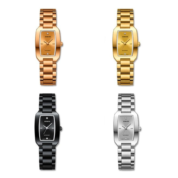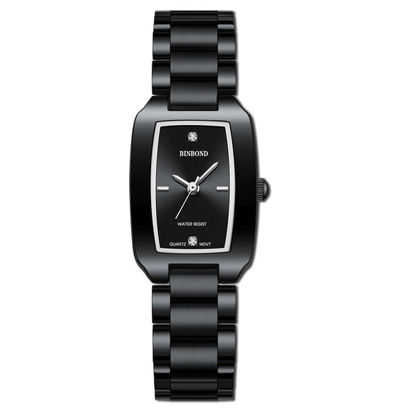 BINBOND N321 Square Temperament Metal 30M Waterproof Quartz Watch, Color: Black