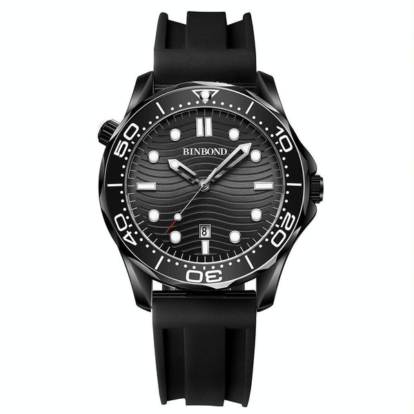 Black Silicon Black Steel Black BINBOND B2820 Luminous 30m Waterproof Men Sports Quartz Watch