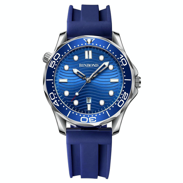 Blue Silicon White Steel Blue BINBOND B2820 Luminous 30m Waterproof Men Sports Quartz Watch