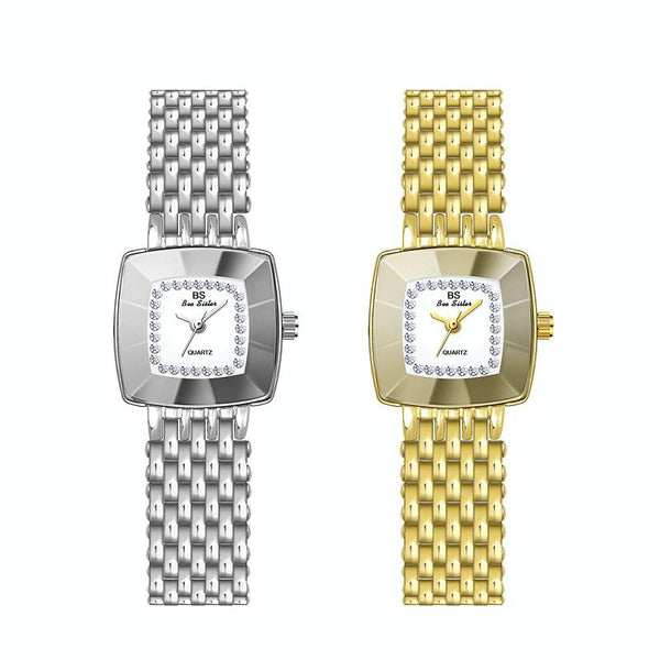 BS Bee SisterFA1197Square Dial Stainless Steel Strap Ladies Simple Watch(Gold)