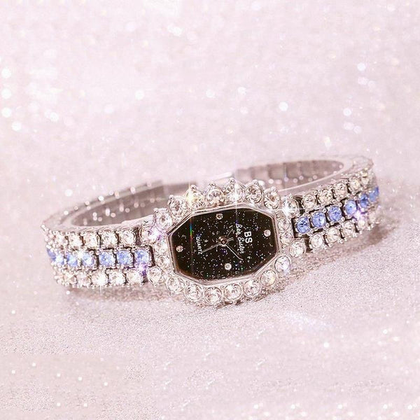 BS bee sister FA1581 Women Octagonal Dial Diamond Plated Rhinestone Bracelet Quartz Watch(Silver Shell Blue Diamond)