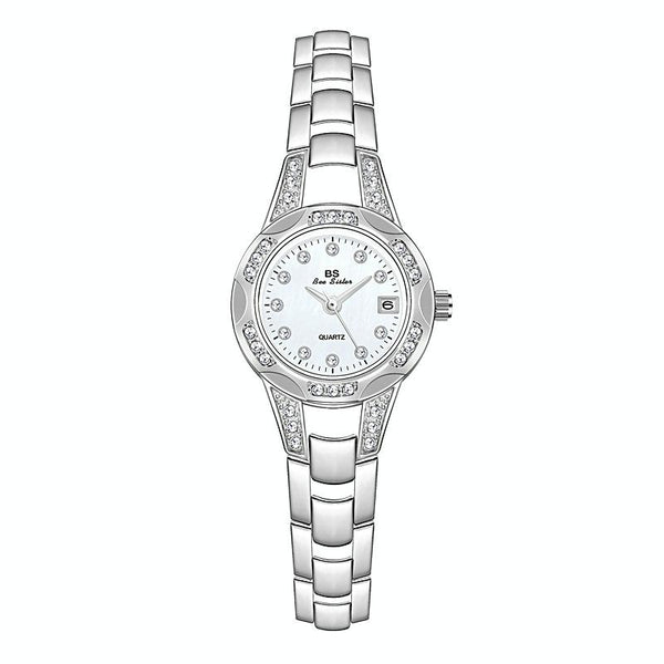 BS Bee Sister FA1679Ladies Diamond Chain Watch Cute Small Round Watch With Calendar(Silver)