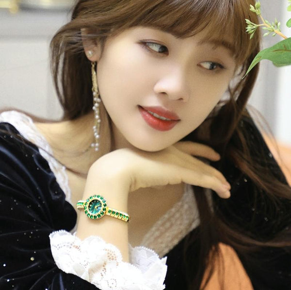 BS Bee Sister FA1698 Ladies Simple Temperament Retro Malachite Texture Small Green Watch(Gold)