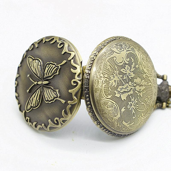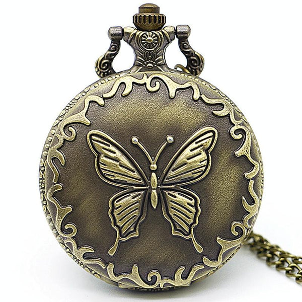 Butterfly Pattern Zinc Alloy Chain Analog Quartz Pocket Watch