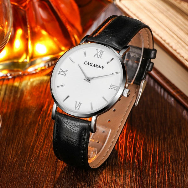 CAGARNY 6812 Concise Style Ultra Thin Quartz Wrist Watch with Leather Band for Women(Black Band)