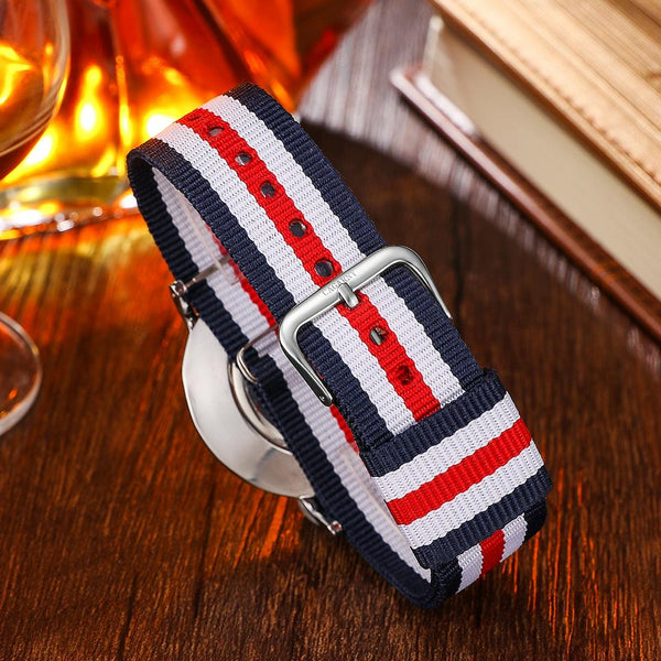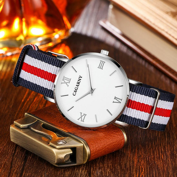 CAGARNY 6812 Concise Style Ultra Thin Quartz Wrist Watch with Striped Nylon Band for Couples(Silver)