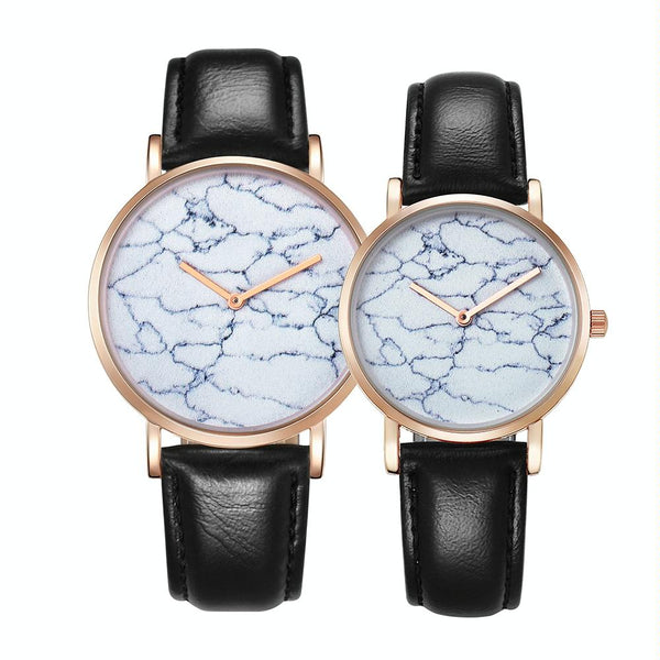 CAGARNY 6812 Round Dial Alloy Gold Case Fashion Couple Watch Men & Women Lover Quartz Watches with PU Leather Band