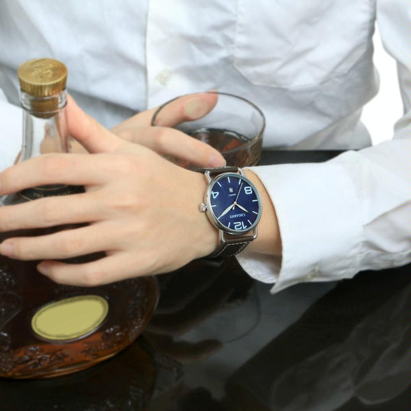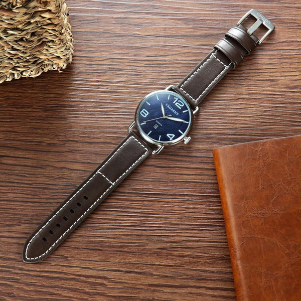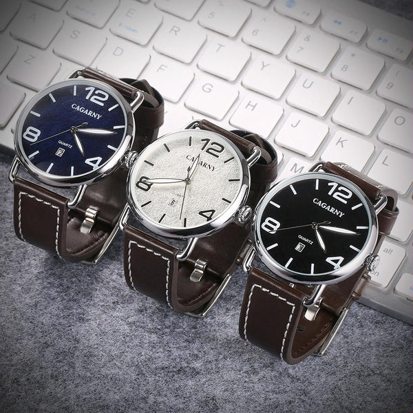 CAGARNY 6815 Living Waterproof Round Dial Quartz Movement Alloy Case Fashion Watch Quartz Watches with Leather Band(Blue)