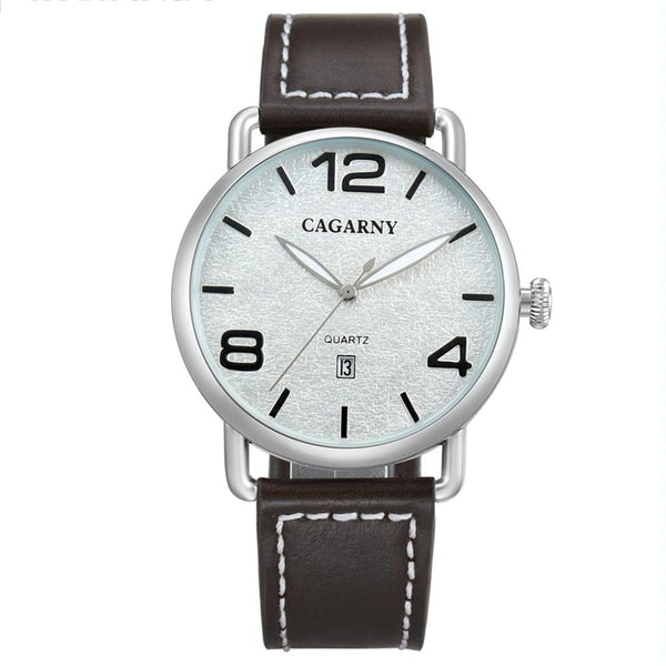 CAGARNY 6815 Living Waterproof Round Dial Quartz Movement Alloy Case Fashion Watch Quartz Watches with Leather Band(White)
