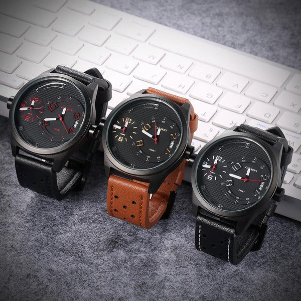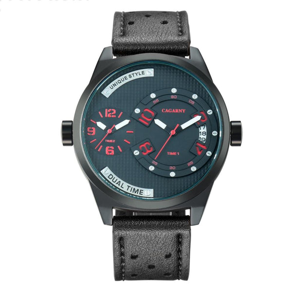 CAGARNY 6816 Living Waterproof Round Dial Dual Quartz Movement Alloy Case Fashion Watch Quartz Watches with Leather Band(Red)