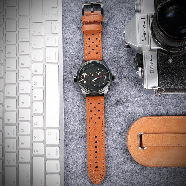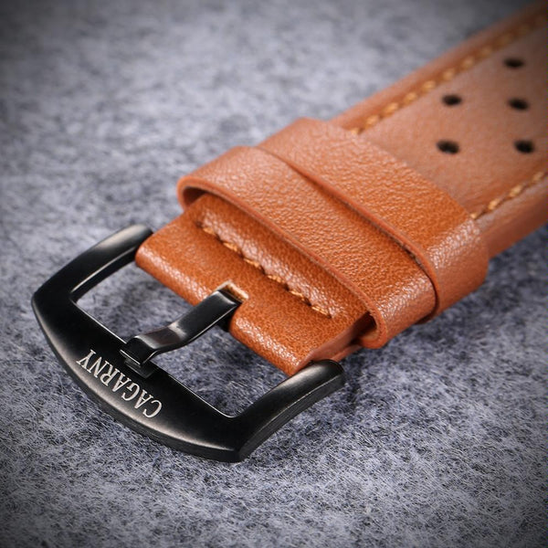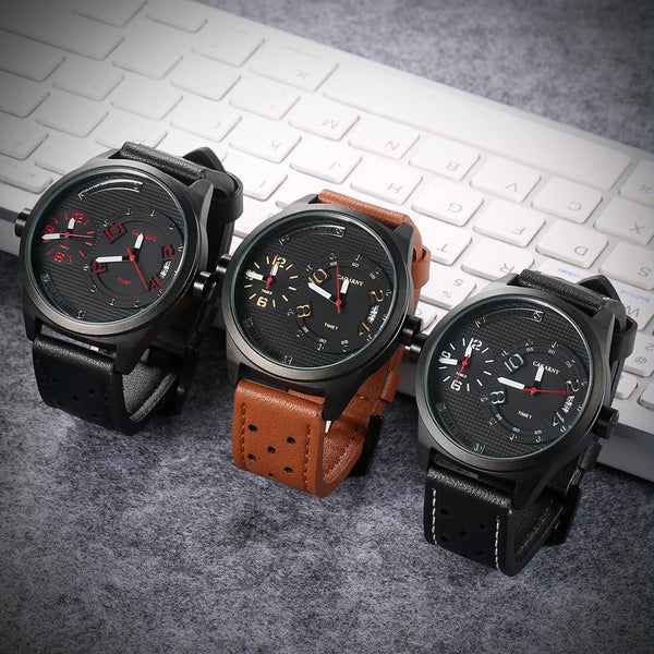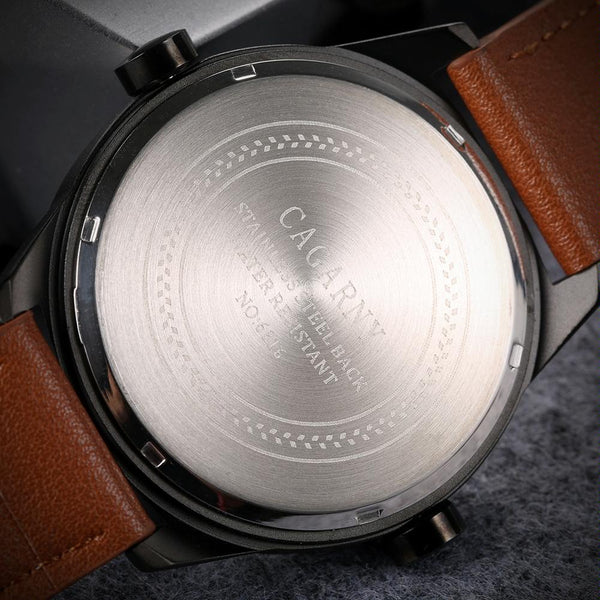 CAGARNY 6816 Living Waterproof Round Dial Dual Quartz Movement Alloy Case Fashion Watch Quartz Watches with Leather Band(Yellow)