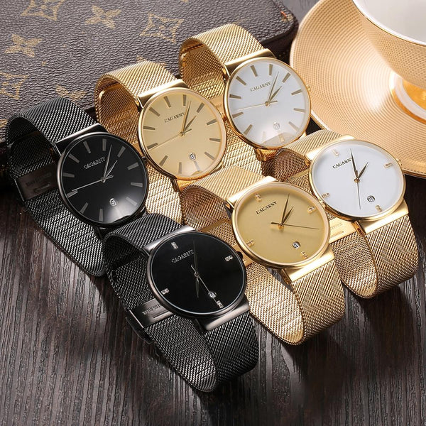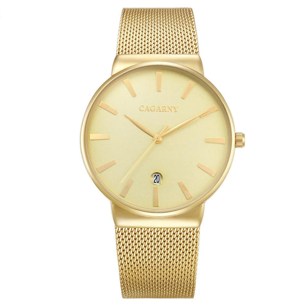 CAGARNY 6817 Living Waterproof Round Dial Quartz Movement Alloy Case Fashion Watch Quartz Watches with Steel Band(Gold)