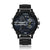 CAGARNY 6820 Fashionable Business Style Large Dial Dual Time Zone Quartz Movement Wrist Watch with Stainless Steel Band & Calendar Function for Men((Black Steel Band Blue Window)