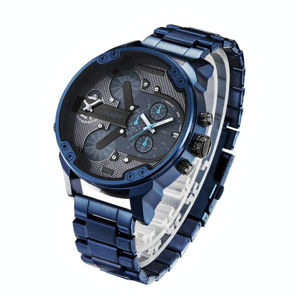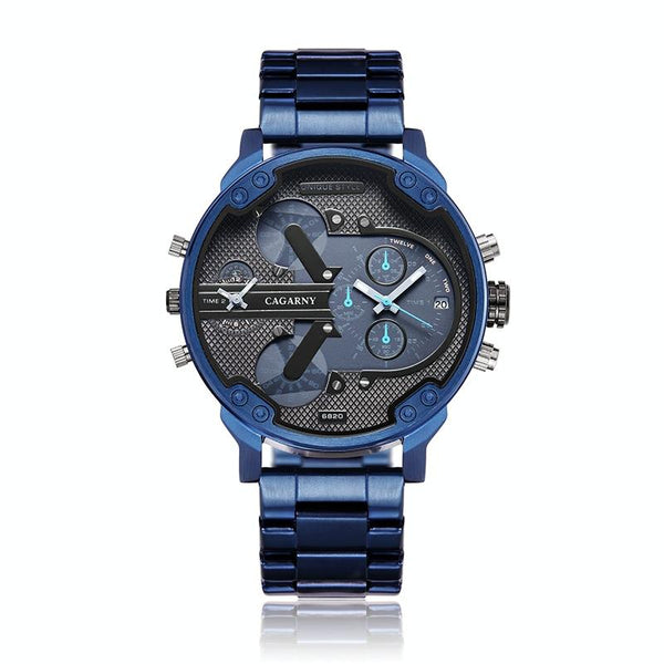 CAGARNY 6820 Large Dial Calendar Display Stainless Steel Band Quartz Dual Movement Watch For Men(Blue)