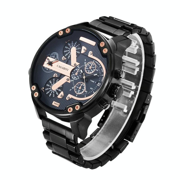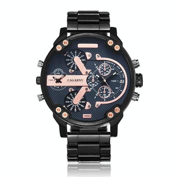 CAGARNY 6820 Large Dial Calendar Display Stainless Steel Band Quartz Dual Movement Watch For Men(Rose Gold Nails)