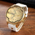 CAGARNY 6820 Round Large Dial Leather Band Quartz Dual Movement Watch For Men(Gold Surface White Band)