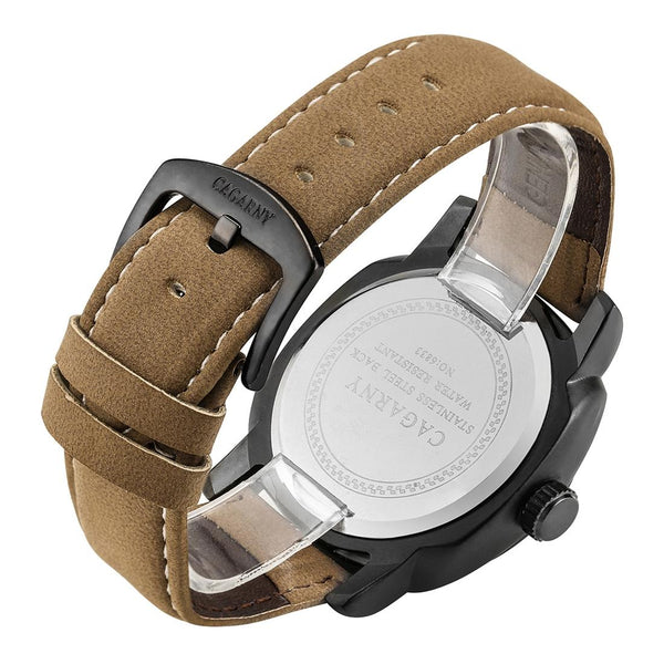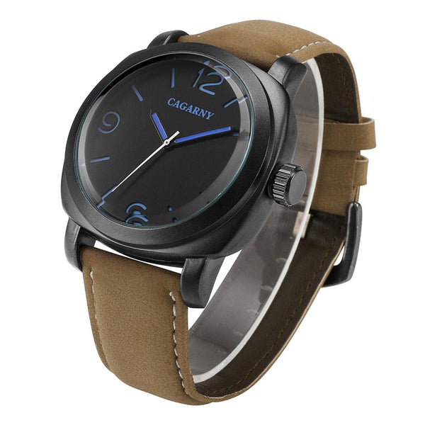 CAGARNY 6833 Fashionable Concise Three Needles Quartz Wrist Watch with Leather Band & 24-hour Indication & Calendar Function for Couples(Blue Scale)