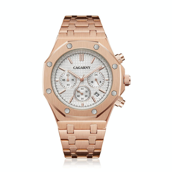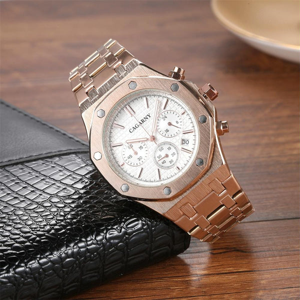 CAGARNY 6835 Men Simple Quartz Steel Band Watch(Rose Gold + White)