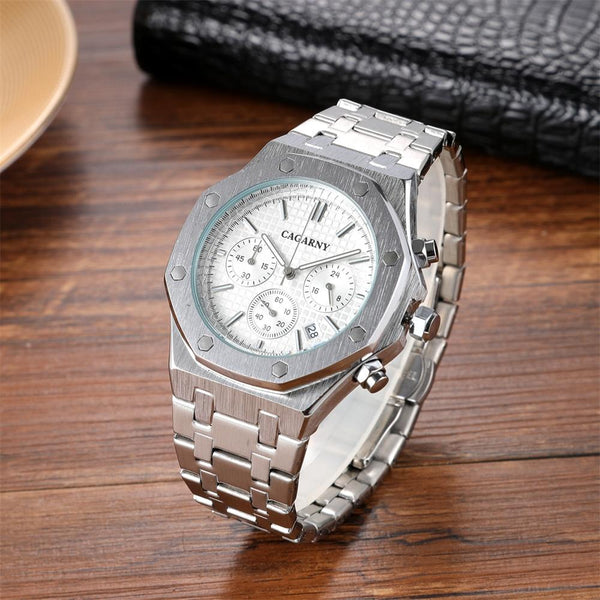CAGARNY 6835 Men Simple Quartz Steel Band Watch(Silver + White)