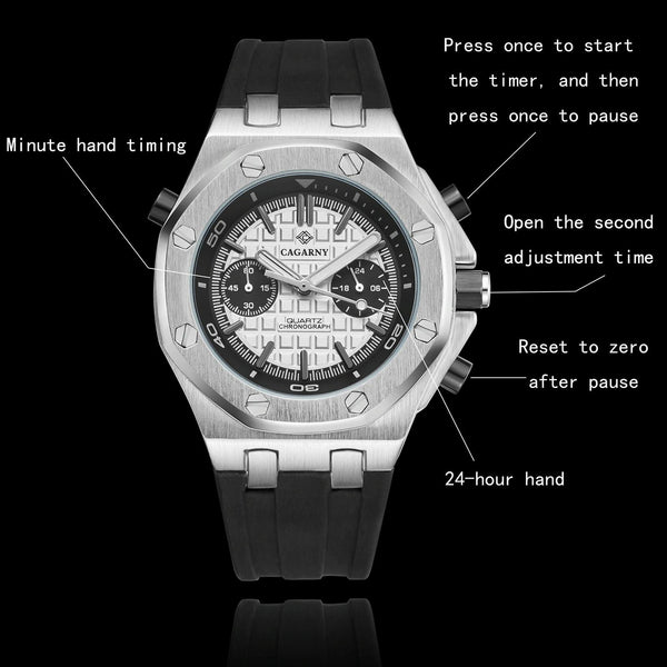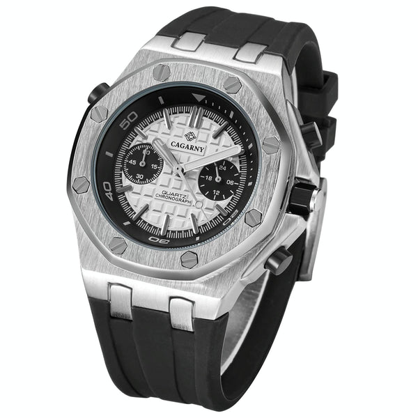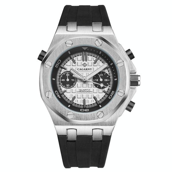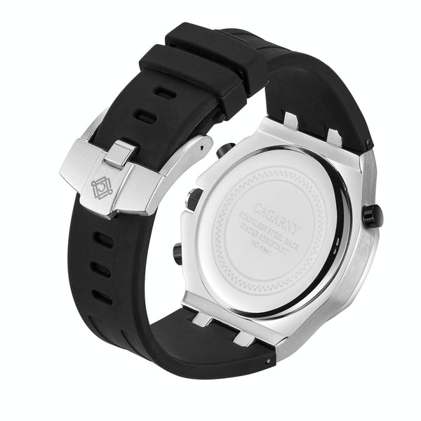 CAGARNY 6861 Checkered Pattern Polygonal Dial Quartz Silicone Strap Watch(White Dial Black Belt)
