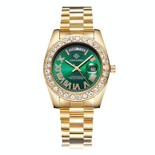 CAGARNY 6866 Fashion Life Waterproof Gold Steel Band Quartz Watch (Green)