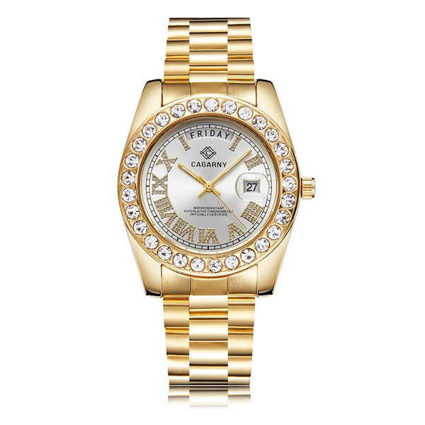 CAGARNY 6866 Fashion Life Waterproof Gold Steel Band Quartz Watch (Silver)