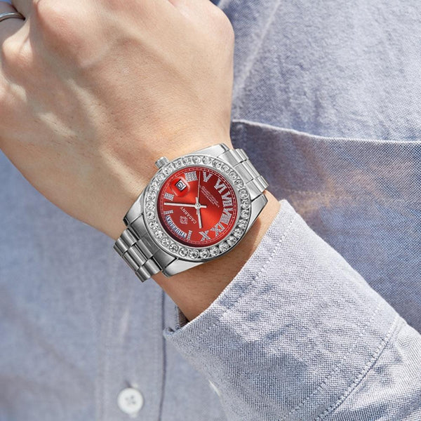 CAGARNY 6866 Fashion Life Waterproof Silver Steel Band Quartz Watch (Red)