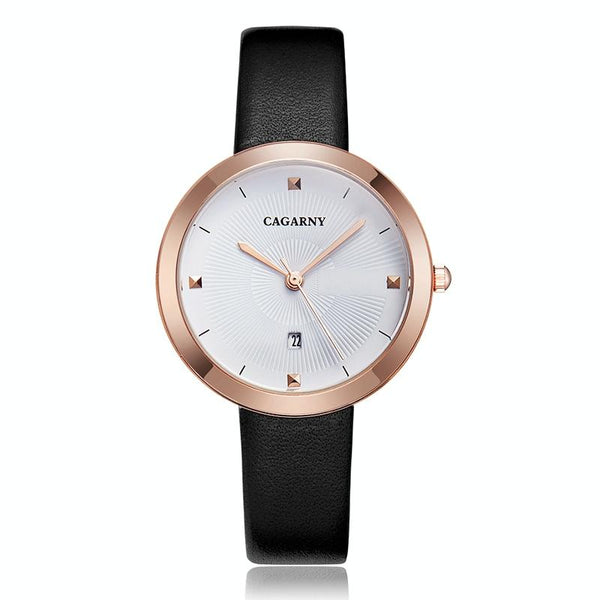 CAGARNY 6871 Fashion Life Waterproof Gold Shell Steel Band Quartz Watch (Black White)