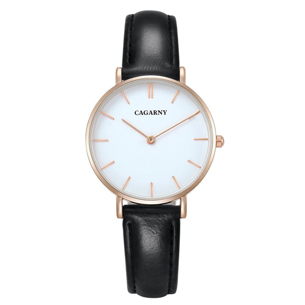 CAGARNY 6872 Living Waterproof Round Dial Quartz Movement Alloy Gold Case Fashion Watch Quartz Watches with Leather Band(Black)