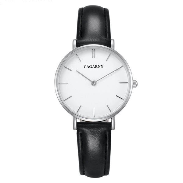 CAGARNY 6872 Living Waterproof Round Dial Quartz Movement Alloy Silver Case Fashion Watch Quartz Watches with Leather Band(Black)