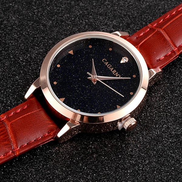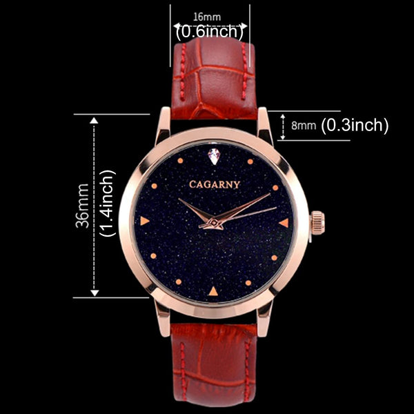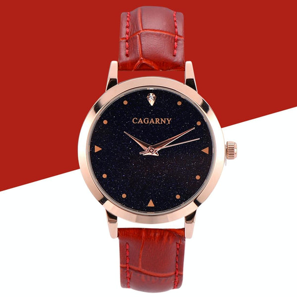 CAGARNY 6875 Round Dial Water Resistant Starry Sky Pattern Fashion Women Quartz Wrist Watch with Leather Band (Red)