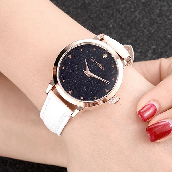 CAGARNY 6875 Round Dial Water Resistant Starry Sky Pattern Fashion Women Quartz Wrist Watch with Leather Band (White)