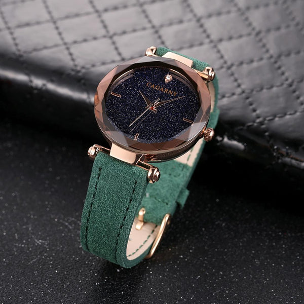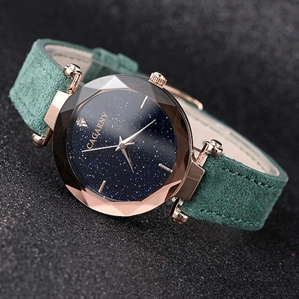 CAGARNY 6877 Water Resistant Fashion Women Quartz Wrist Watch with Leather Band(Green)