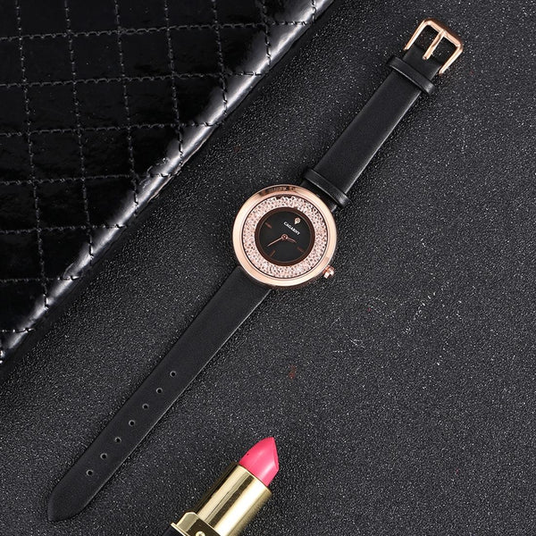 CAGARNY 6878 Water Resistant Fashion Women Quartz Wrist Watch with Leather Band(Black+Gold+Black)