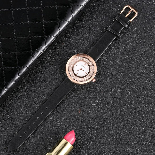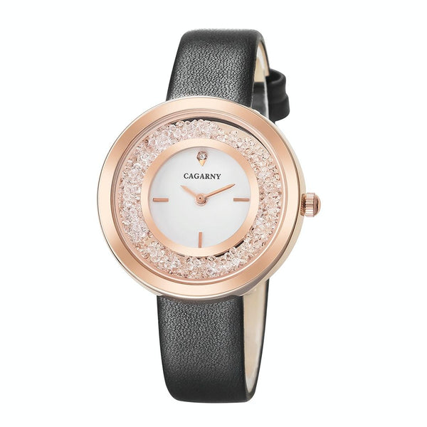 CAGARNY 6878 Water Resistant Fashion Women Quartz Wrist Watch with Leather Band(Black+Gold+White)