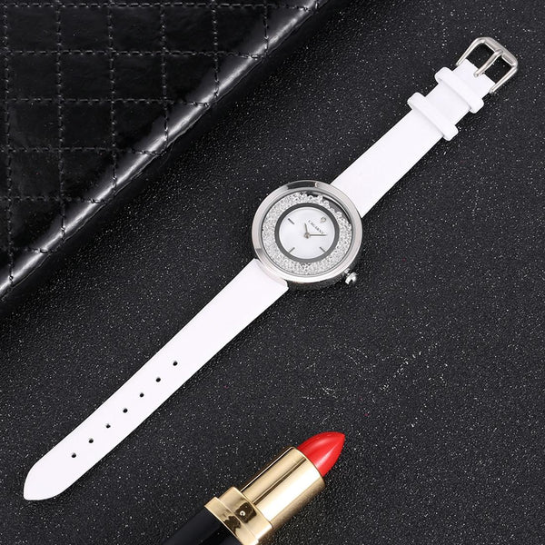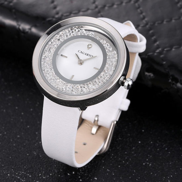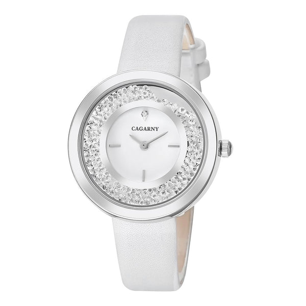 CAGARNY 6878 Water Resistant Fashion Women Quartz Wrist Watch with Leather Band(White+Silver)