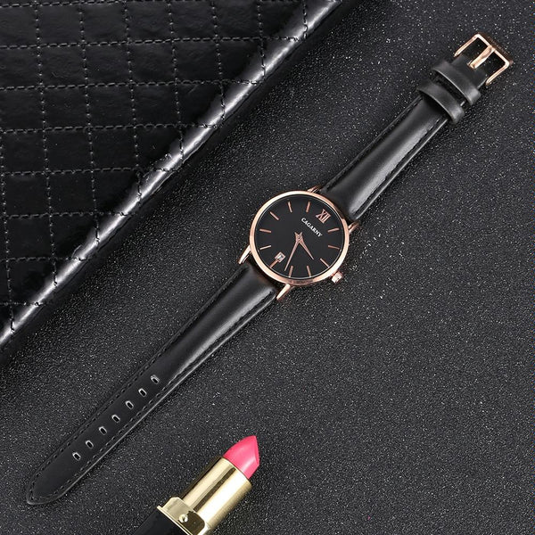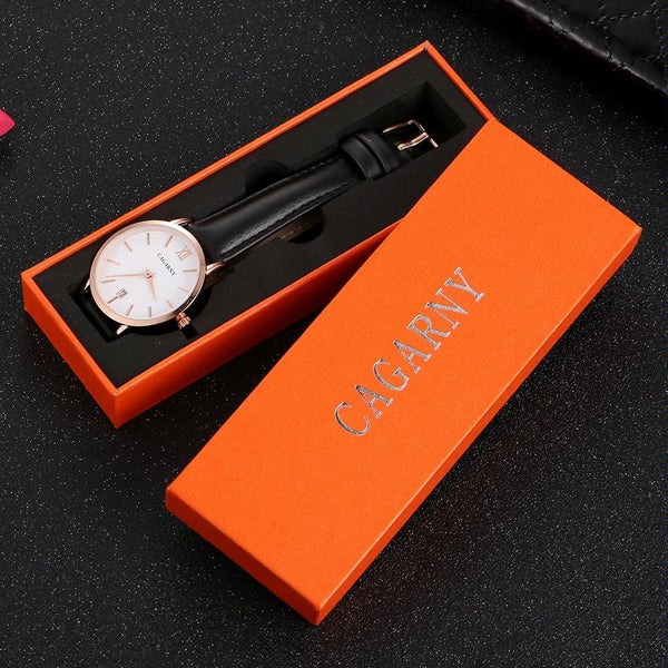 CAGARNY 6879 Fashion imported Quartz Wrist Watch with Leather Band (Black+ Black)