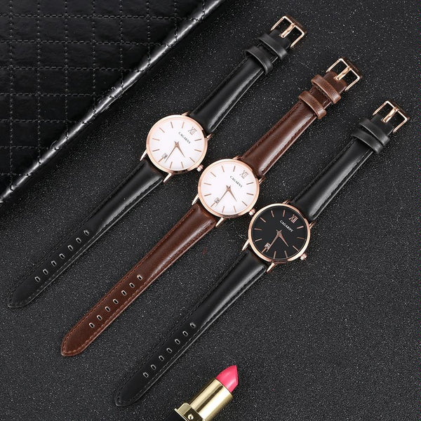 CAGARNY 6879 Fashion imported Quartz Wrist Watch with Leather Band (Brown+ White)