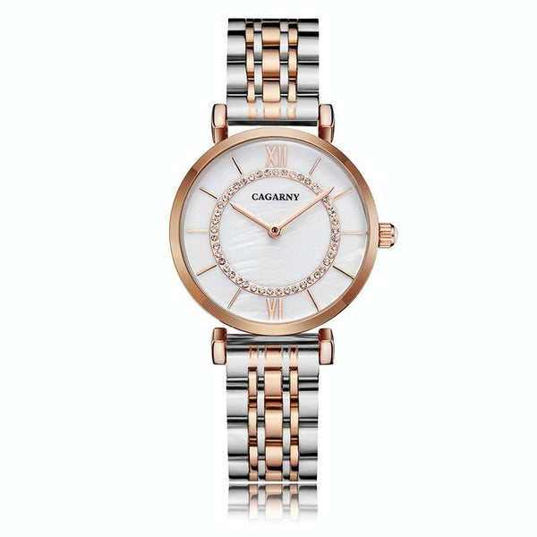 CAGARNY 6880 Fashion Life Waterproof Gold Shell Silver Gold Steel Band Quartz Watch