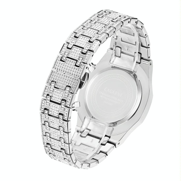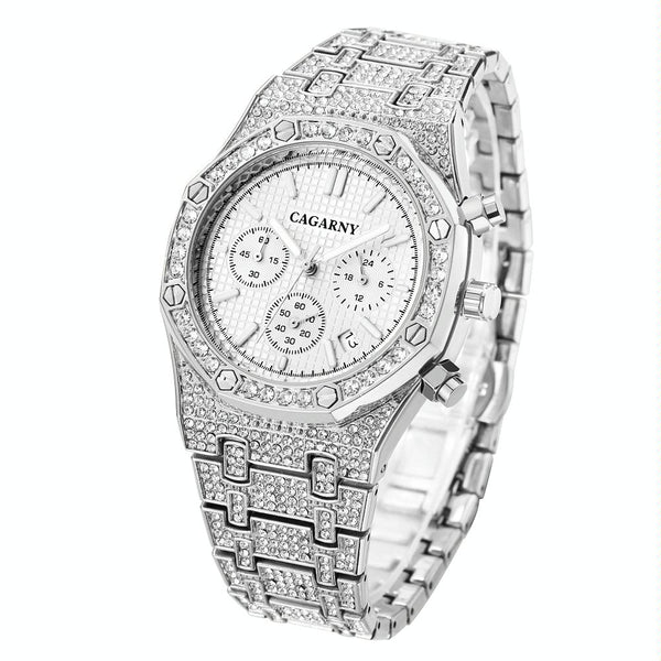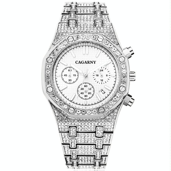 CAGARNY 6881 Diamond-studded Six-needles Guartz Dual Movement Watch Men Stainless Steel Strap Watch (Silver Shell White Dial)