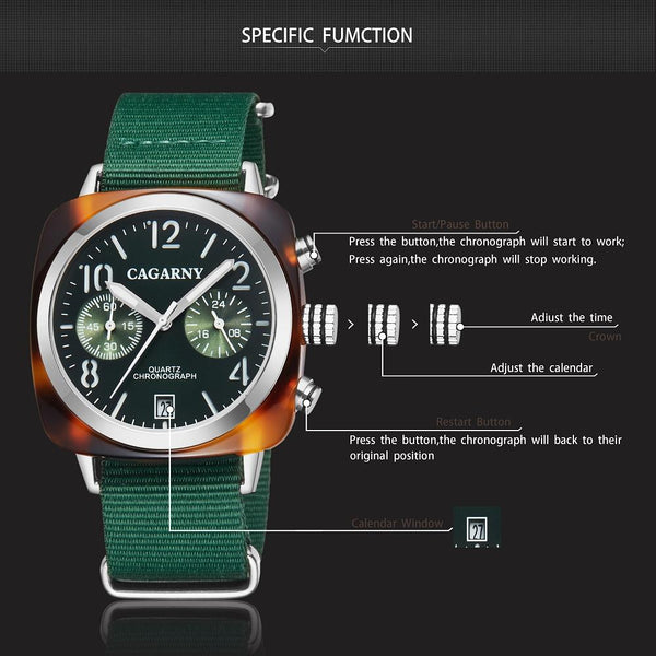 CAGARNY 6883 Fashion Waterproof Polychromatic Metal Shell Quartz Watch with Canvas Wristband