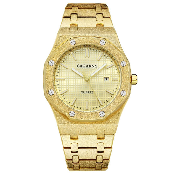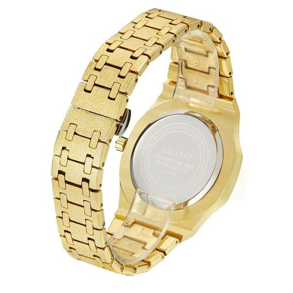 CAGARNY 6885 Octagonal Dial Quartz Dual Movement Watch Men Stainless Steel Strap Watch(Gold Shell Gold Dial)