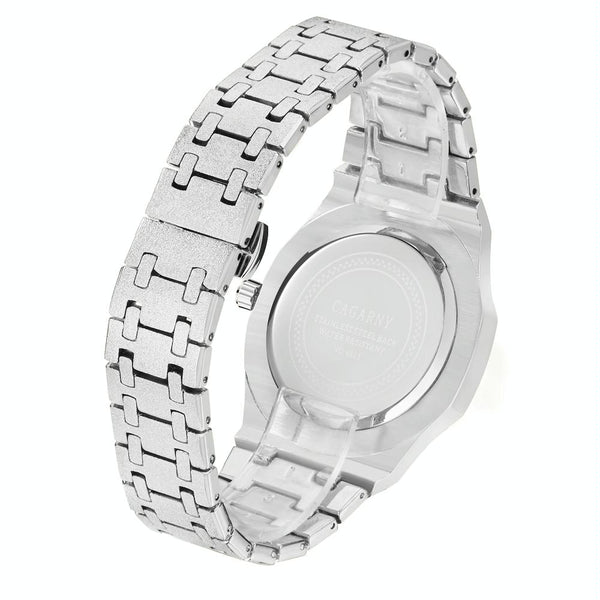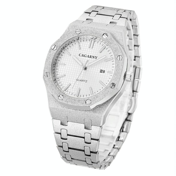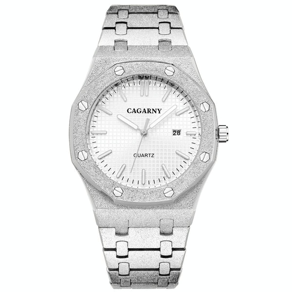 CAGARNY 6885 Octagonal Dial Quartz Dual Movement Watch Men Stainless Steel Strap Watch(Silver Shell White Dial)